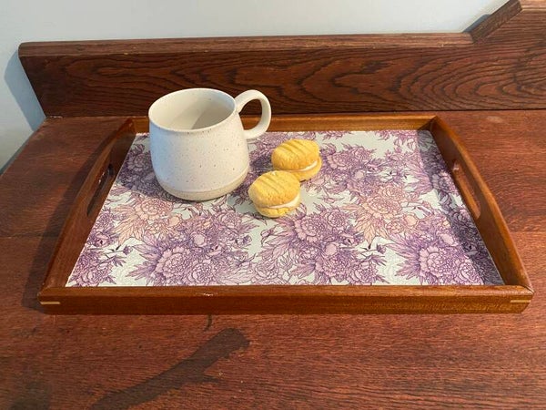 Decorative Timber Trays 400mm x 280mm. Decorated with decoupage and sealed with polyurethane for durability.