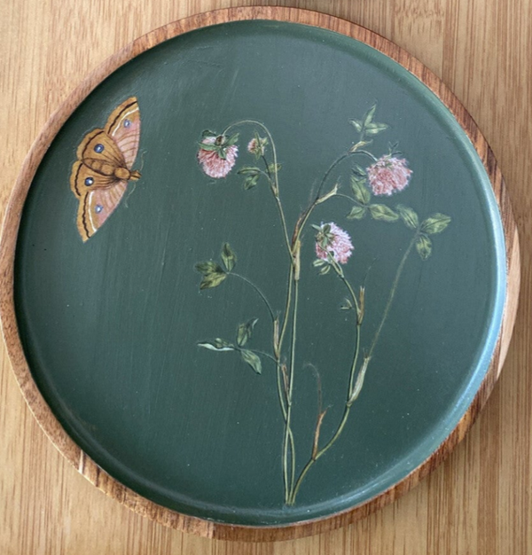 Timber trays decorated with decoupage to make each one unique and polyurethane has been added for durability.