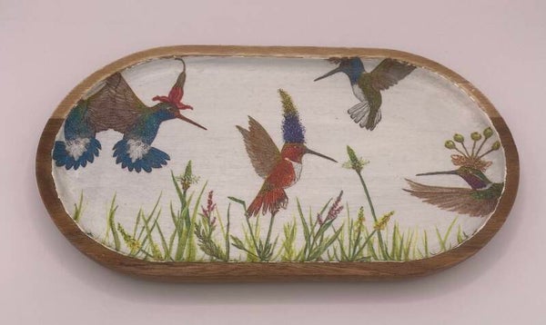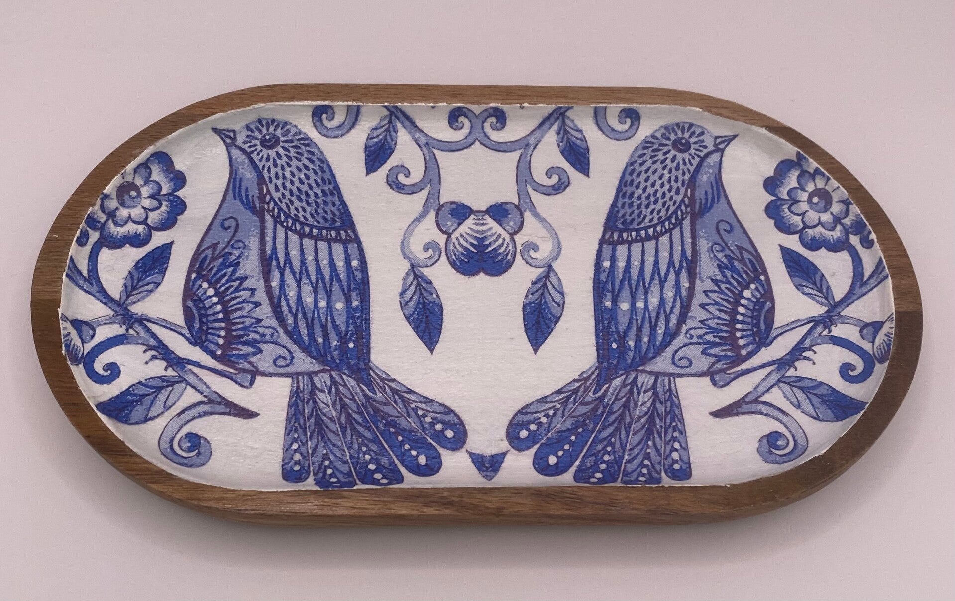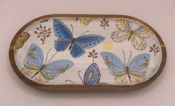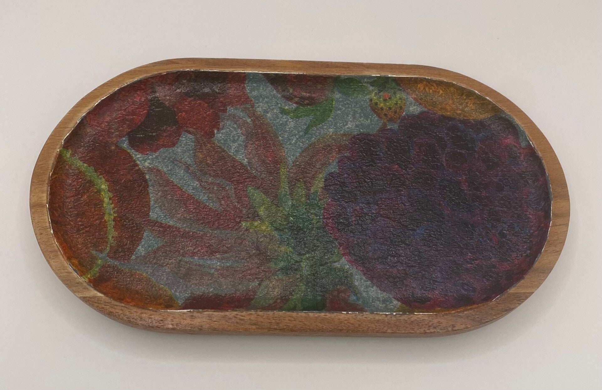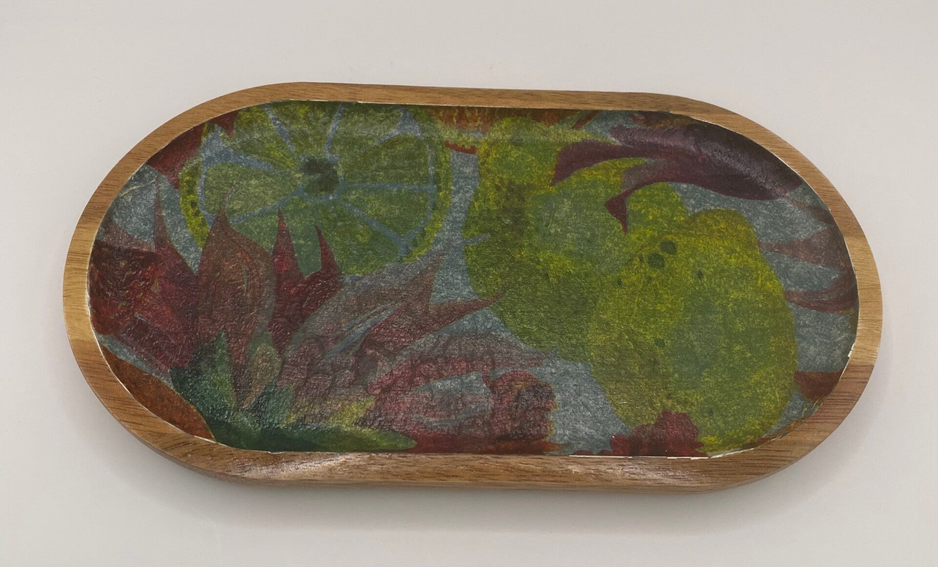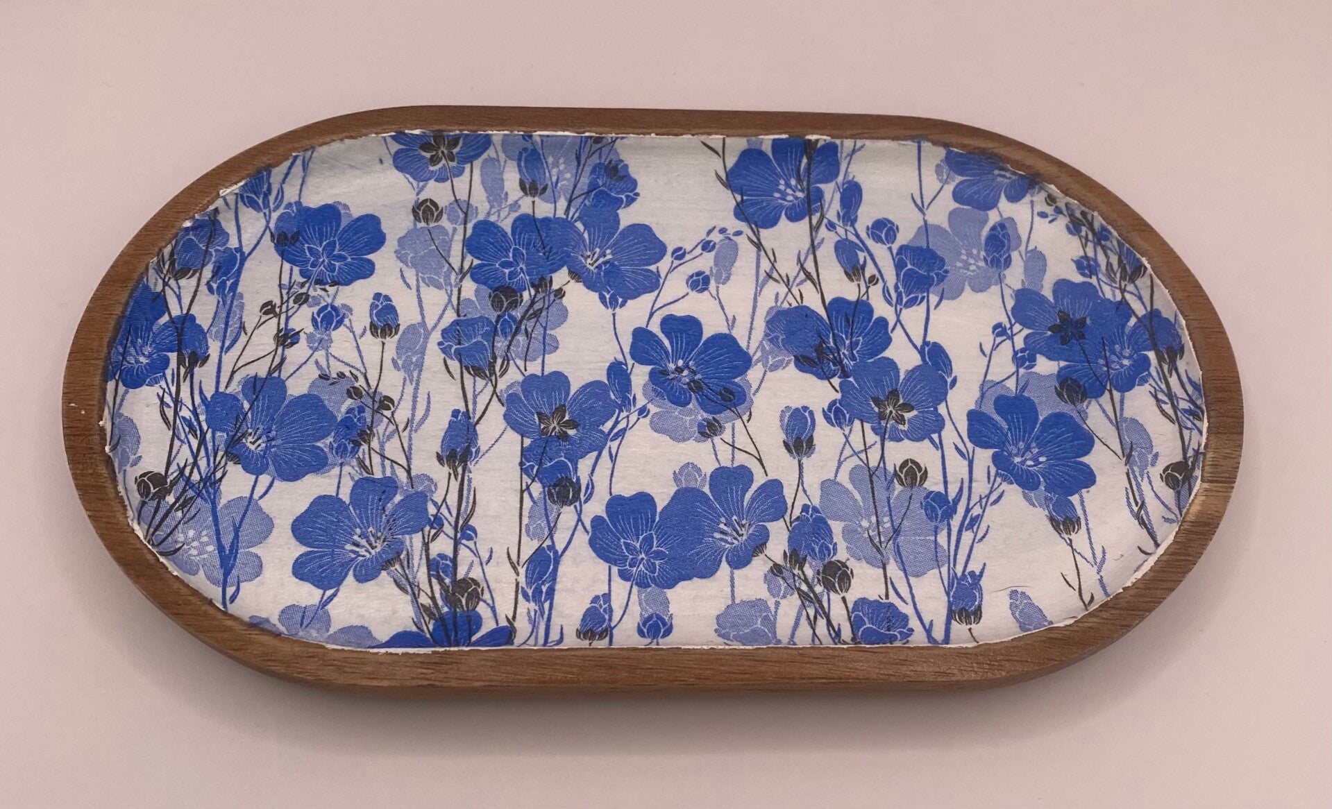 Decorative Timber Trays, each unique with decoupage design and polyurethane added for durability.