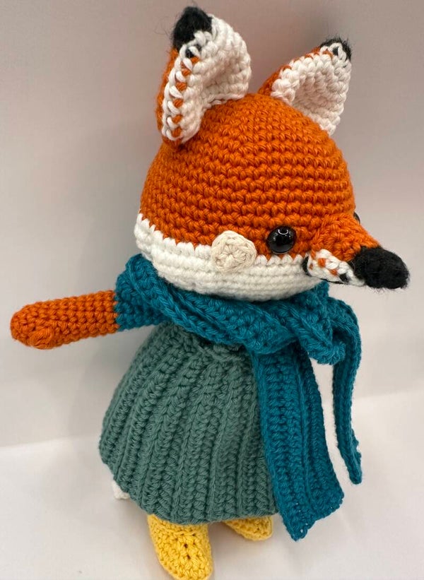 Crocheting Rita Fox was a joy to crochet, with 100% cotton and safety eyes attached. Rita's scarf, pinafore dress and boots are removable, she stands at 20cm. 🦊
