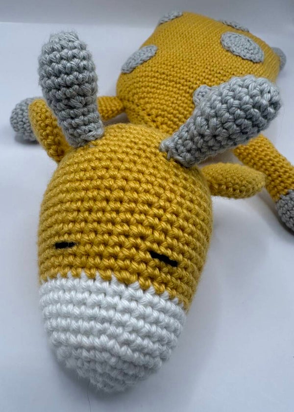 Kai, the adorable sleeping giraffe, is an ideal comfort toy for babies, young people, or anyone who loves giraffes. Constructed from high-quality 100% cotton, Kai measures 30cm in length.